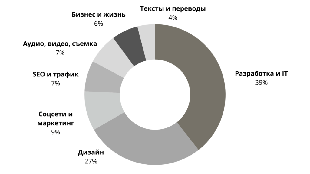 36% – высшее (бакалавриат/специалитет), 8% – магистратура или аспирантура, еще 8% – два и более высших образования. Фриланс в 2026 году – это не «работа без диплома», а рынок, где конкурируют образованные специалисты с серьезной базой.