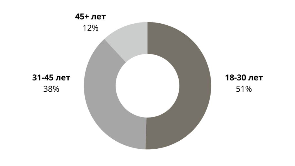 Более половины мужчин, работающих на Kwork, – в возрасте 18-30 лет, еще 38% – от 31 до 45. Для многих это первый осознанный карьерный выбор – без офиса, но с четкой финансовой стратегией.