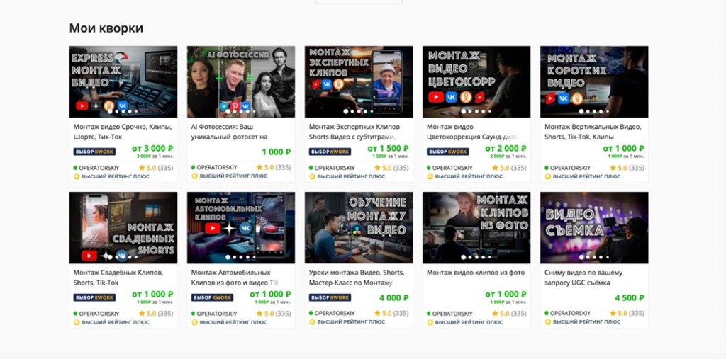 4. Больше предложений услуг! Ну, кстати, это может быть кому-то неочевидно, но если охватывать больше различных запросов заказчиков, то так ты повышаешь свои шансы на оформление заказа. У меня размещено 10 кворков. Это даже сама площадка подсказывает, глупо не воспользоваться такой возможностью))