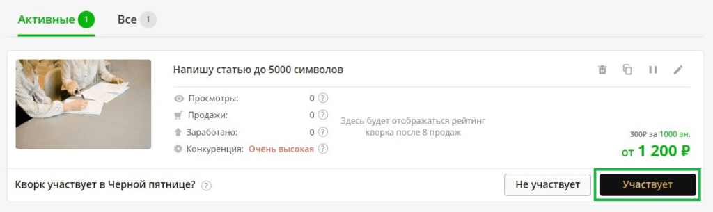- Система автоматически применит скидку к выбранным кворкам, и эти услуги присоединятся к участию в Черной Пятнице!