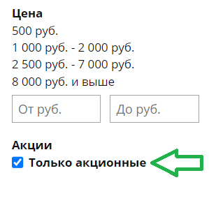 - В каталоге есть фильтр «Только акционные»