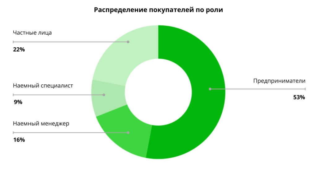 Значимый сегмент – наемные сотрудники (25% вместе): менеджеры (16%) делегируют рабочие процессы, а специалисты (9%) ускоряют свою работу.