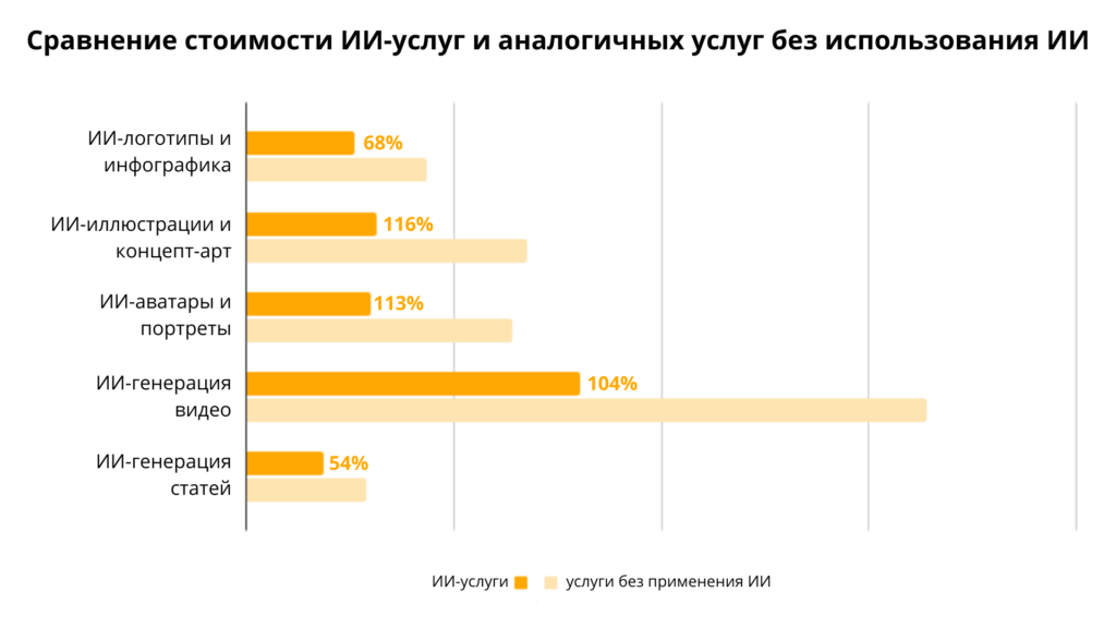 — в рубрике «ИИ-генерация видео» – в 2,04 раза дешевле, чем в рубрике «Видео»