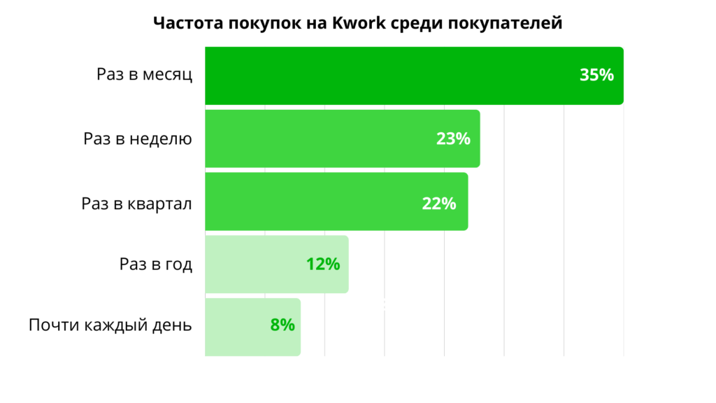 - Регулярность – новый стандарт: 58% покупателей обращаются к фрилансерам не реже раза в месяц. Для них это не экстренная мера, а рутинный инструмент.